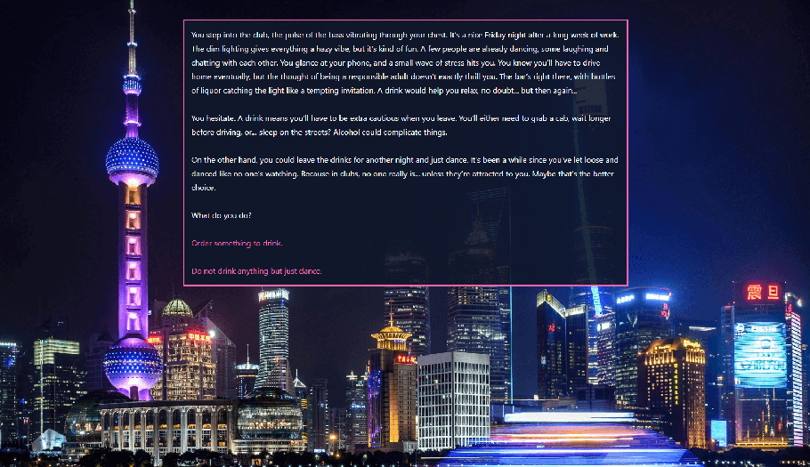 With more than 82,000 words, you’ll delve into a branching tale full of seductive interactions and dominant and submissive dynamics.