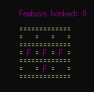 Enter the femboy’s position (1–9) to create a cute femboy, or type 0 if none exists.