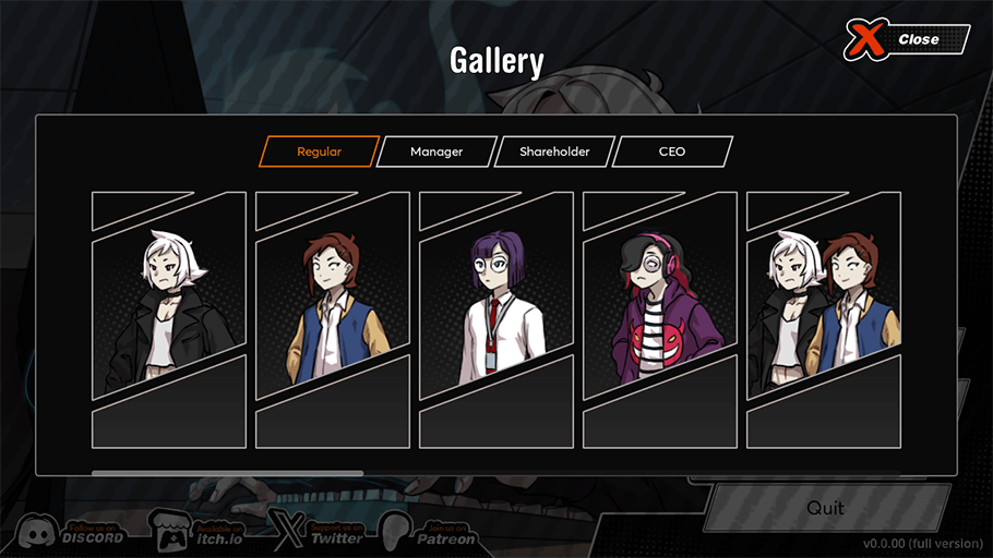 Regulars, managers, stockholders, and the president will be the four levels of the game.
