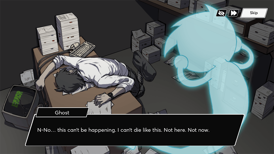 You are a ghost that wanders around the workplace with the intention of possessing every worker. When they are in a vulnerable state, such as when they are stretching, yawning, or sleeping, you can take possession of them. You have to align your essence with their breathing pattern as you possess them.