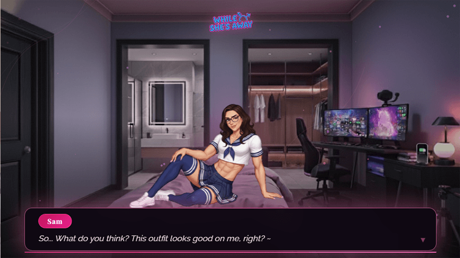 She’s Away, on the other hand, is a personal experience that delves into self-discovery, crossdressing, and hidden passions. Her wardrobe is waiting for her in the calm, deserted house. When no one is around, how far will you go?